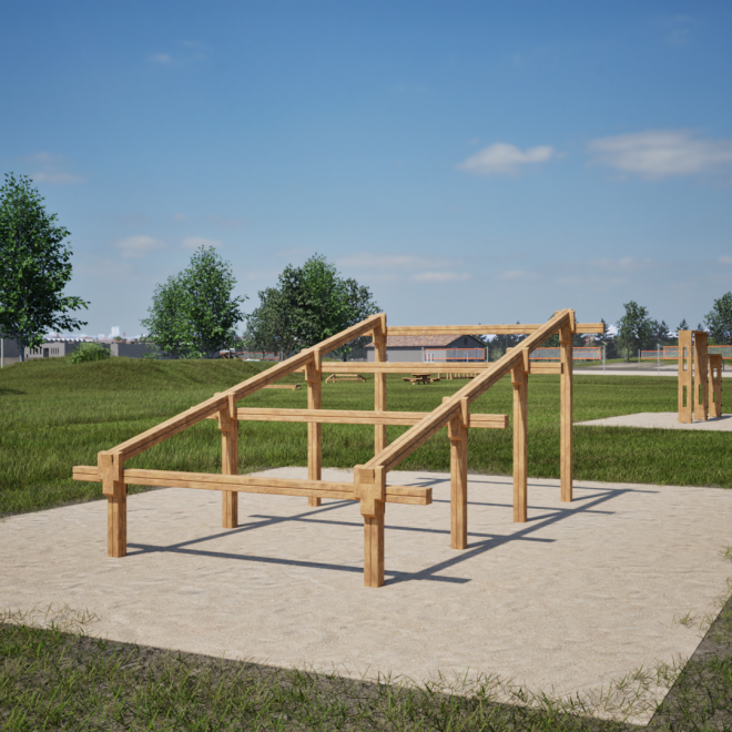 Climb Obstacle е идеалното допълнение към всяка зона за външна активност, създадено да стимулира физическото развитие и координация. Този уред предлага възможност за ефективна тренировка на мускулите и подобряване на баланса, като същевременно осигурява забавление на открито.