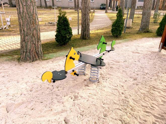 Изработен от прахово боядисана стомана, HDPE и PE, Double Pony Spring Rider гарантира дълготрайност и устойчивост на атмосферни условия. Комбинацията от висококачествени материали осигурява здрава и стабилна конструкция, която лесно издържа на интензивна употреба и запазва своята естетика през времето.