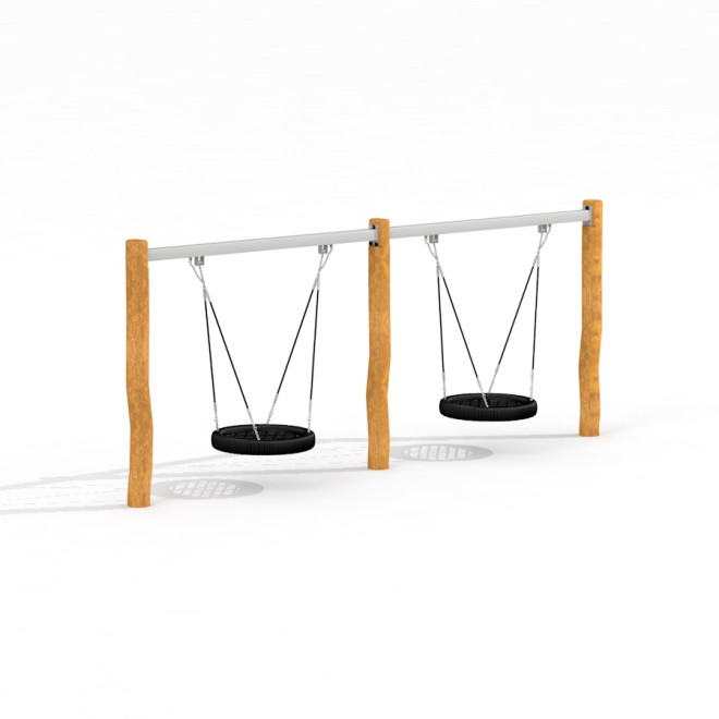 Тази двойна люлка с две гнезда тип „птиче гнездо“ е идеална за паркове, детски площадки и градини, където създава възможности за социална игра и активно забавление. Естественият вид на дървото и модерният дизайн я правят хармонично допълнение към всяка зелена или градска среда.