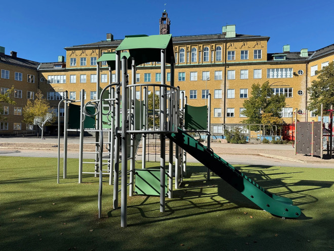 Fort with two towers and a slide