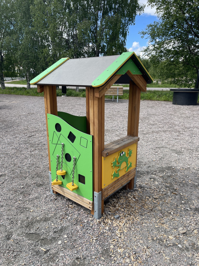 Frog Playhouse е идеална за детски площадки, градини и пространства за игра, като стимулира социалното взаимодействие и креативността на децата, превръщайки всяко външно място в малък свят на приключения.