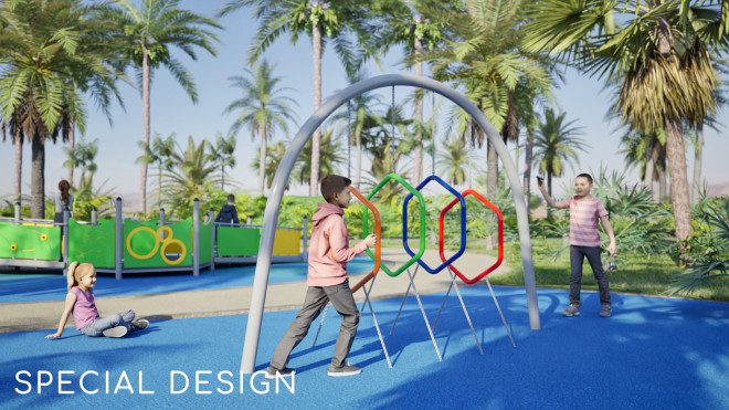 Geometric obstacle course е създаден, за да предложи забавен и предизвикателен елемент за детски площадки и открити пространства, който стимулира физическата активност и координация.