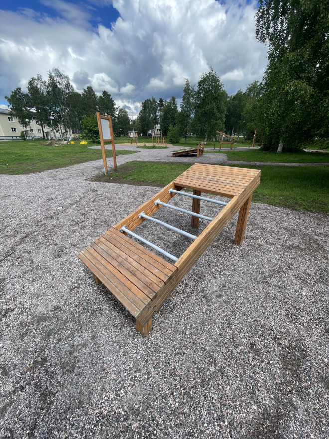 Проектирана за потребители с височина над 140 см, пейката осигурява стабилна и сигурна опора по време на упражнения. Конструкцията отговаря на изискванията за безопасност и позволява безопасно използване в обществени открити пространства, като критичната височина на падане е оптимално съобразена за комфорт и защита.
