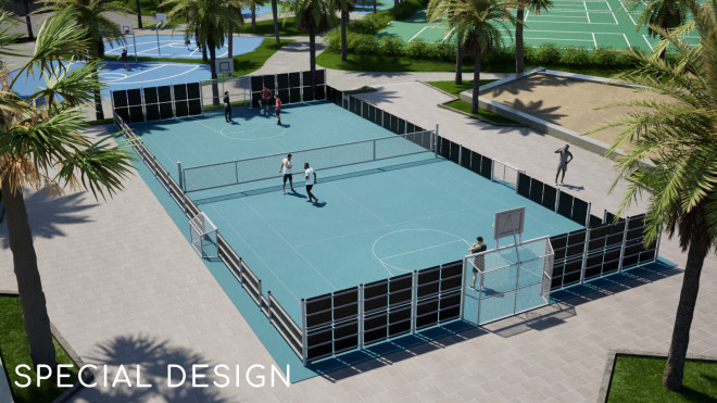 Този спортен комплекс е идеален за разнообразни спортни активности на открито, насърчавайки активния начин на живот и социалното взаимодействие в градската среда.