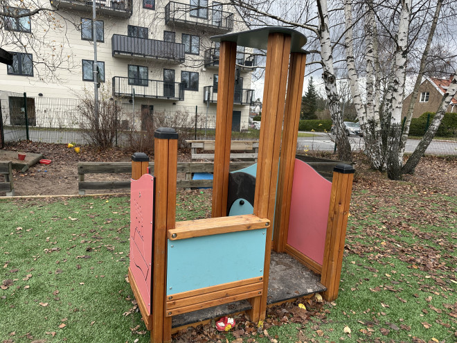 Изработена от висококачествен листвен дървен материал, устойчив на атмосферни влияния, комбиниран с антихлъзгащо водоустойчиво шперплатово покритие. Къщичката разполага със здрави елементи от HDPE и PE пластмаса, а верижките са от неръждаема стомана, осигуряващи дълготрайност и надеждност при ежедневна употреба.
